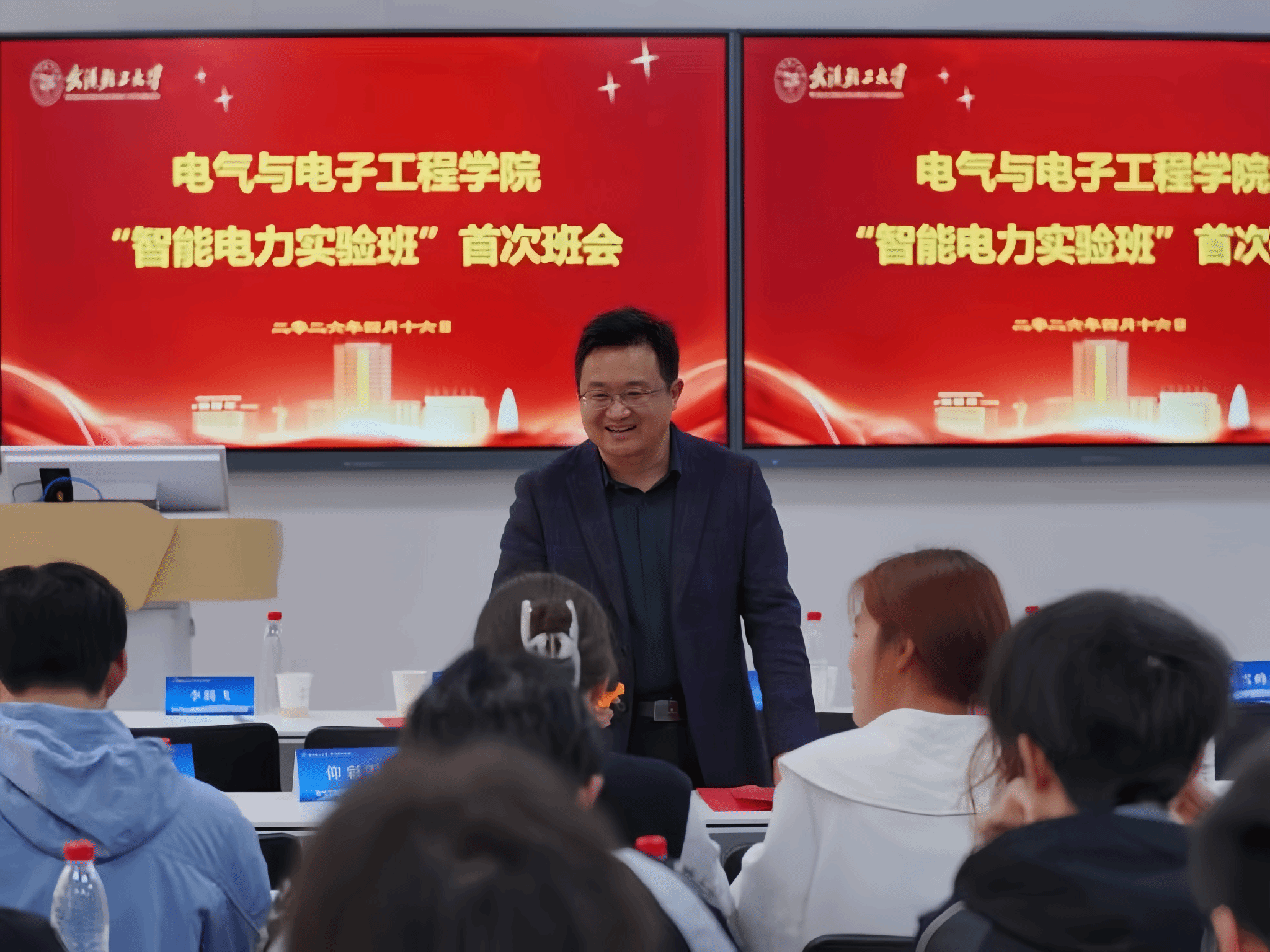 4月16日下午,电气学院“智能电力实验班”开班仪式在金银湖校区电气楼103教室举行。校党委书记严冀钢、副校长丁华锋出席。学校党政办、教务处、创新创业学院主要负责人,武汉市兆恒智能科技有限公司企业代表,电气学院领导班子全体成员、教师代表及首届“智能电力实验班”全体学生参加活动。仪式由电气学院院长张聪主持。